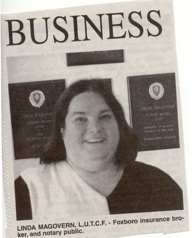 After leaving Connecticut, Linda and her husband, moved to Ashland, WI and she became an insurance agent. They moved back to Foxborough, MA, where she became very active in the Foxborough Jaycees, while she worked as an insurance agent.