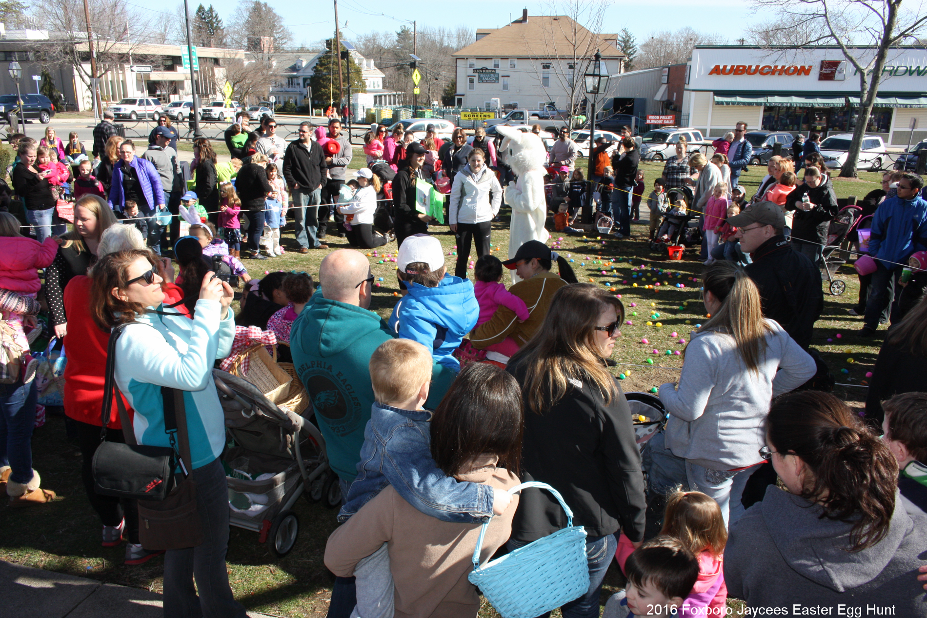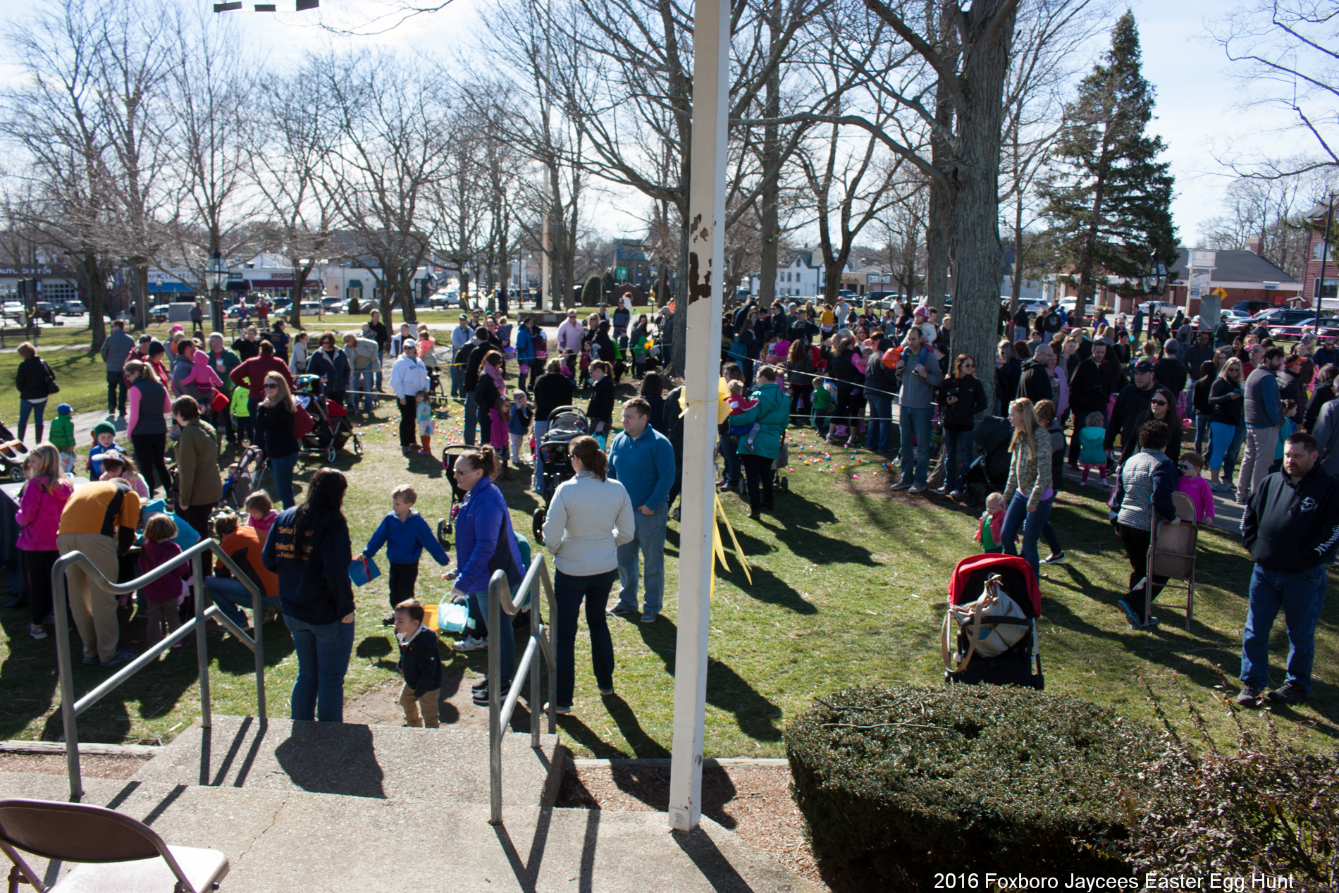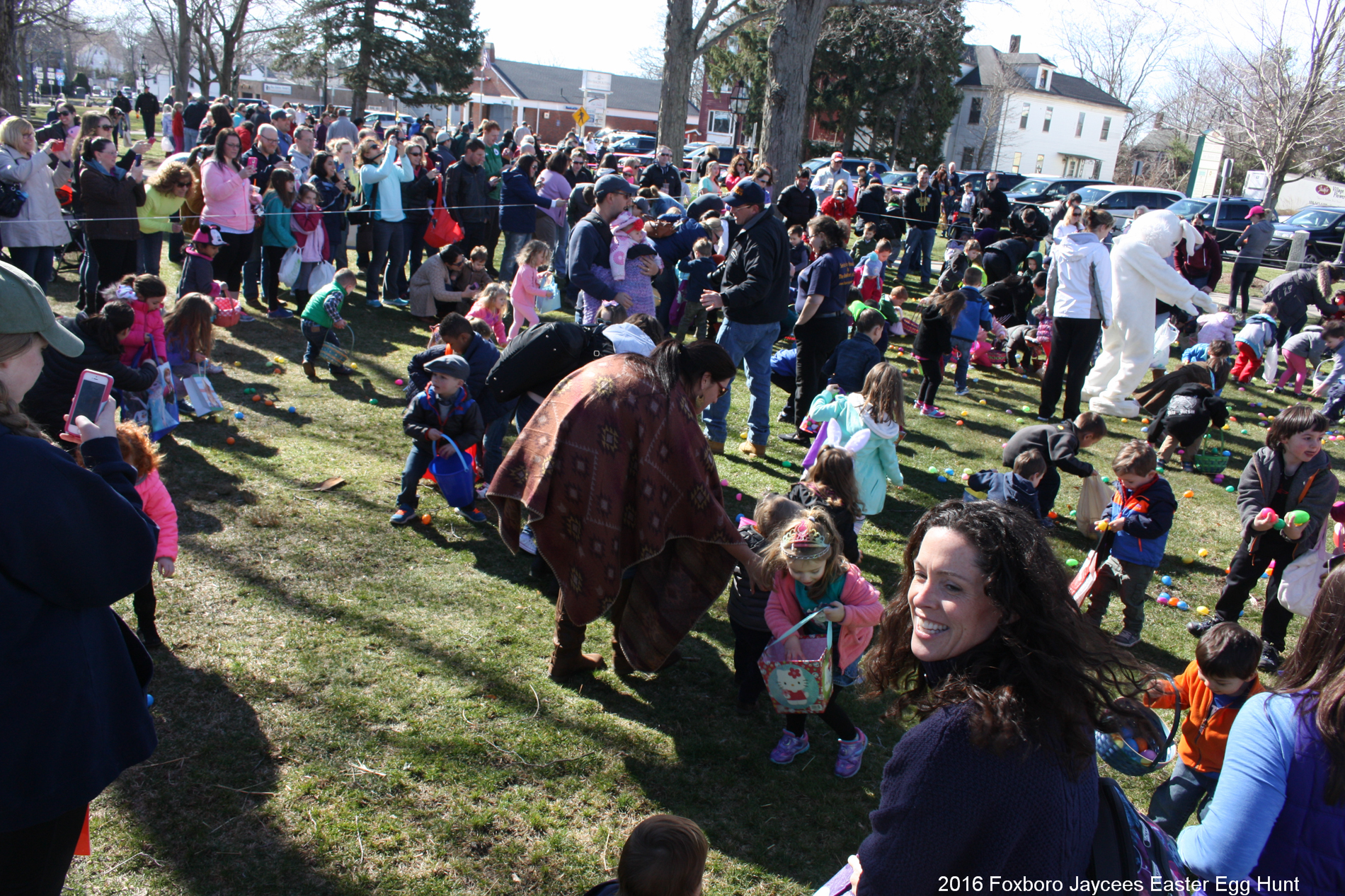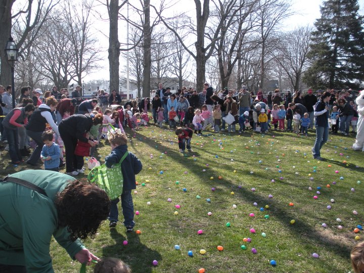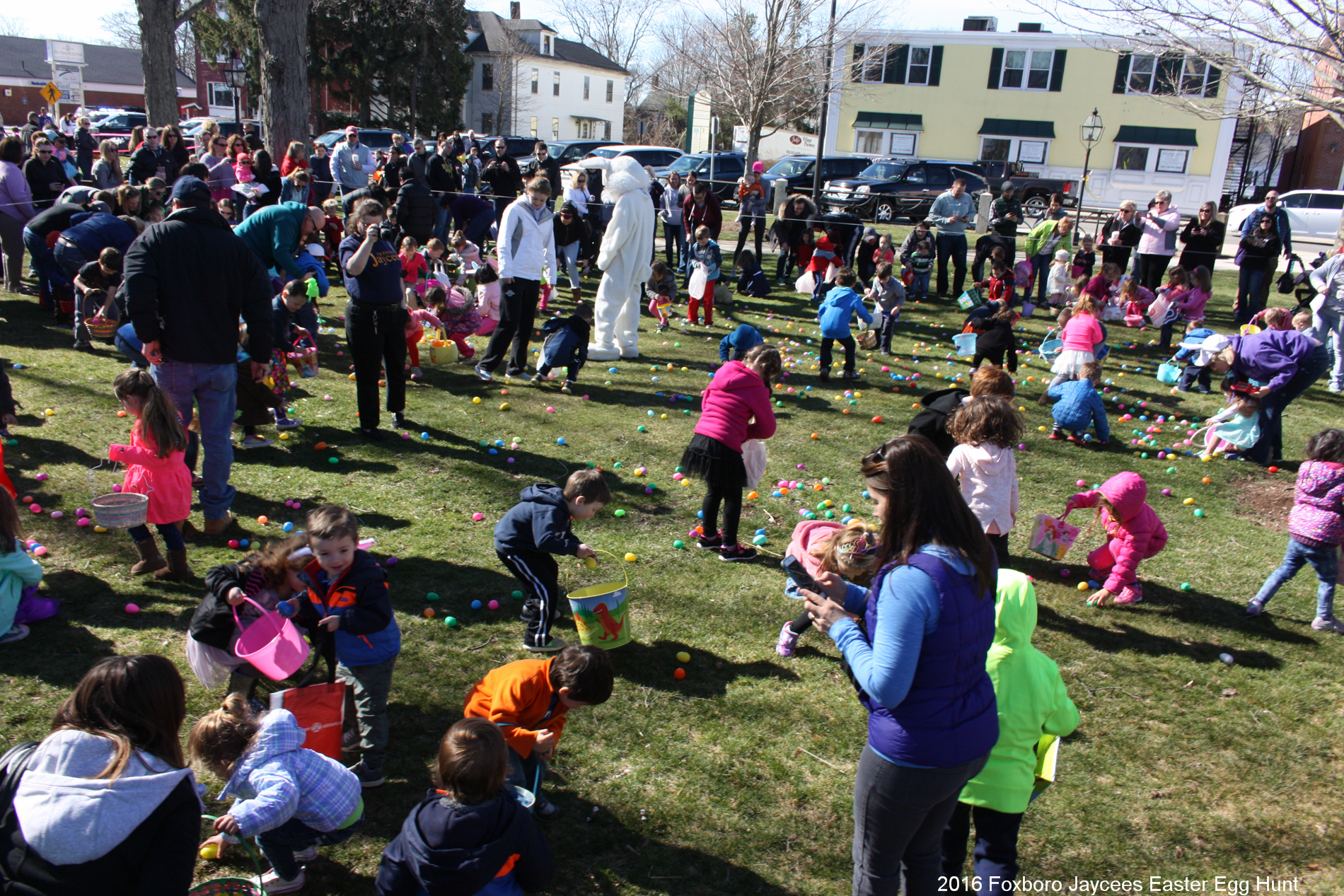 For over 35 years, each spring, right before Easter, the Foxboro Jaycees fill over 3500 (yes, three thousand and five hundred!) plastic eggs with candy and scatter them across Foxboro Common. (It’s not really a “hunt” because the thousands of eggs are everywhere so everyone gets a good bounty of goodies!)