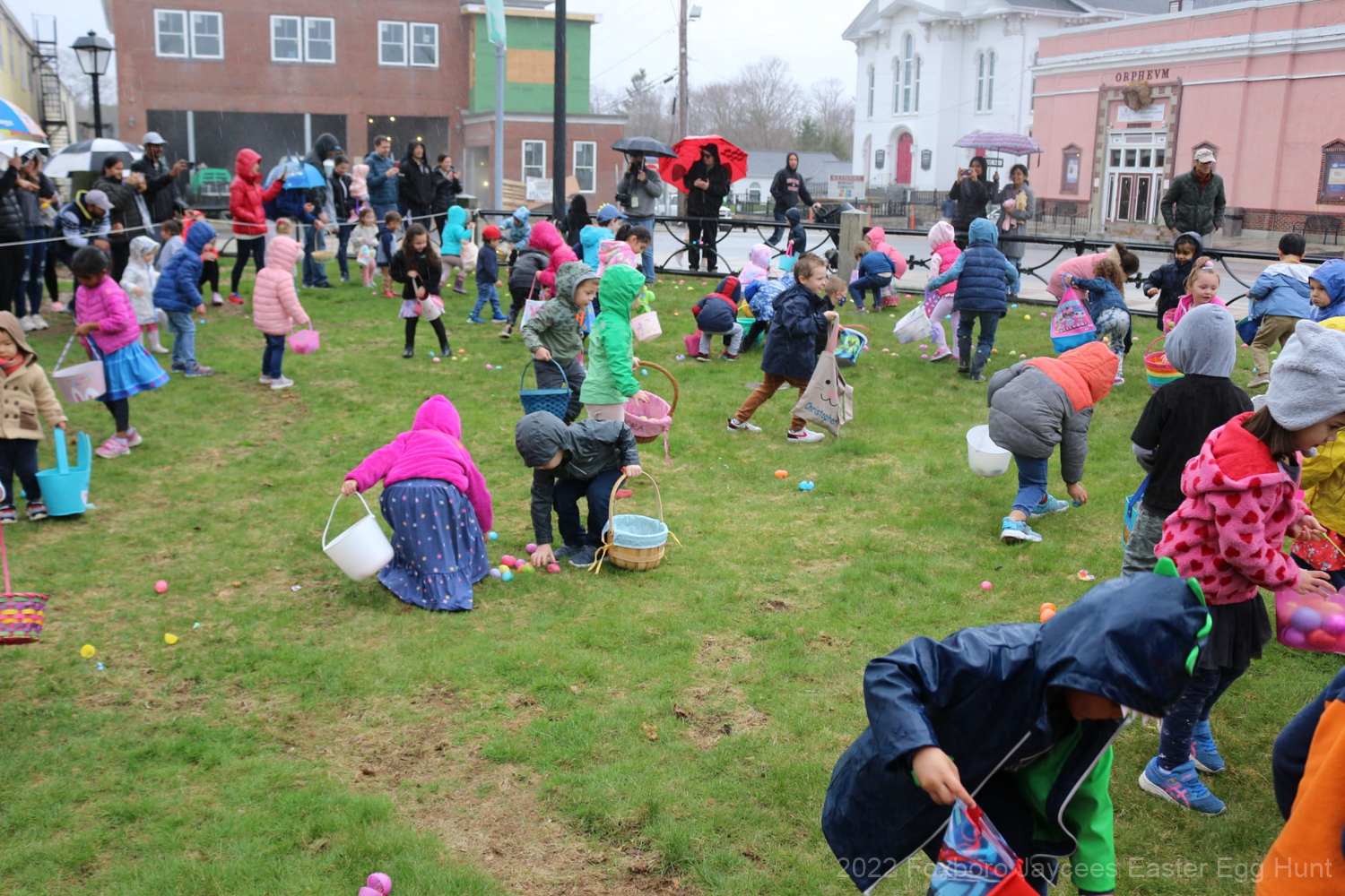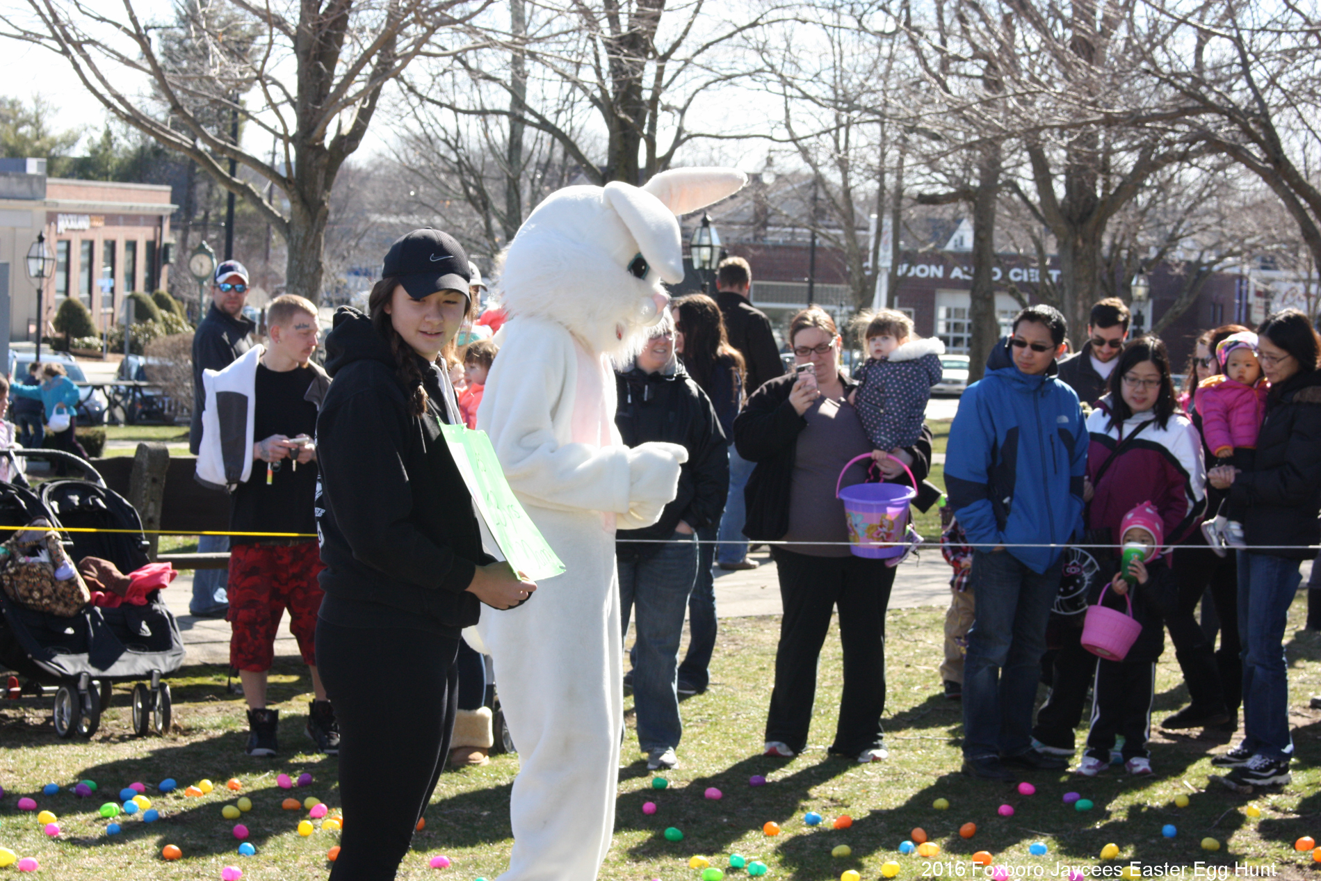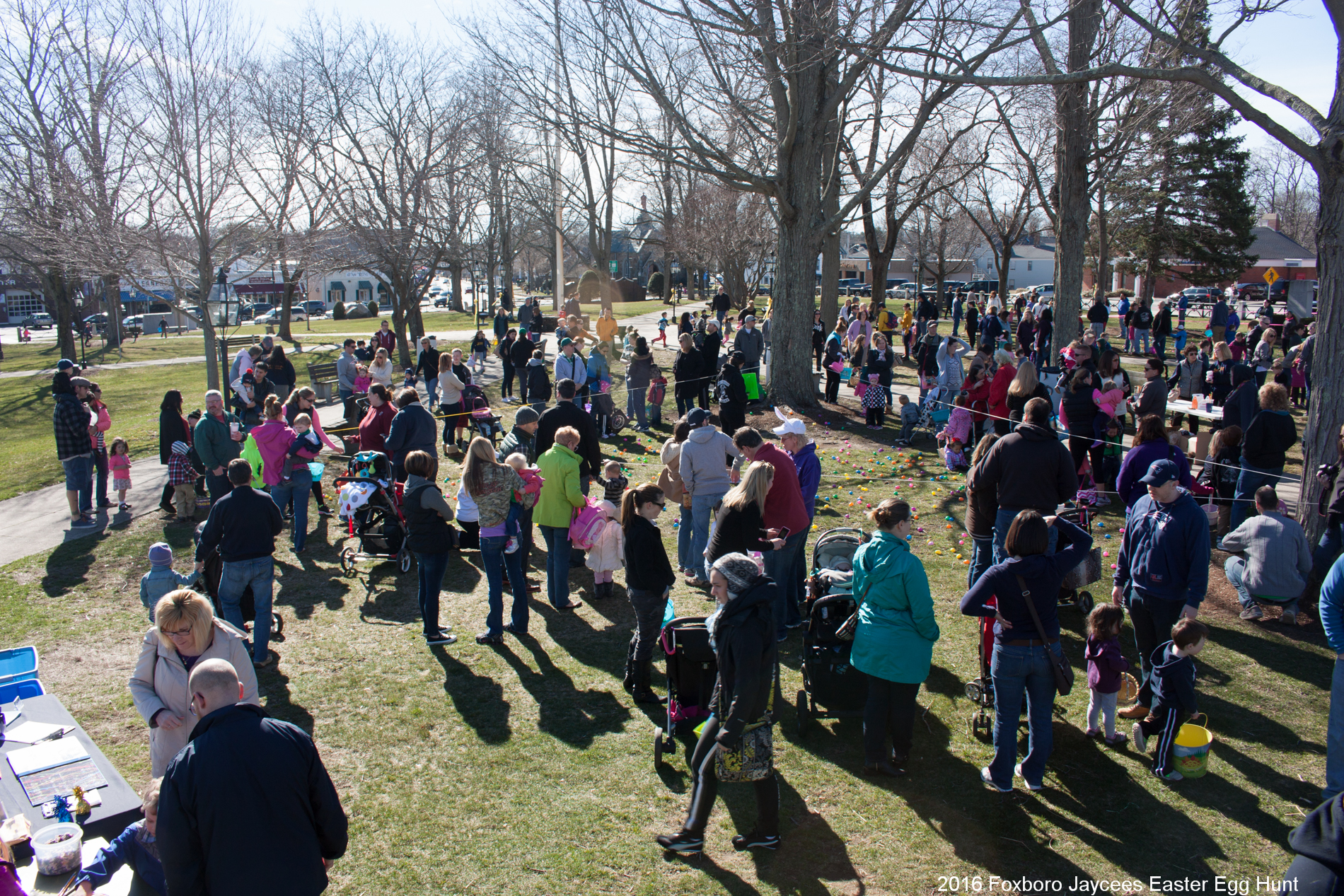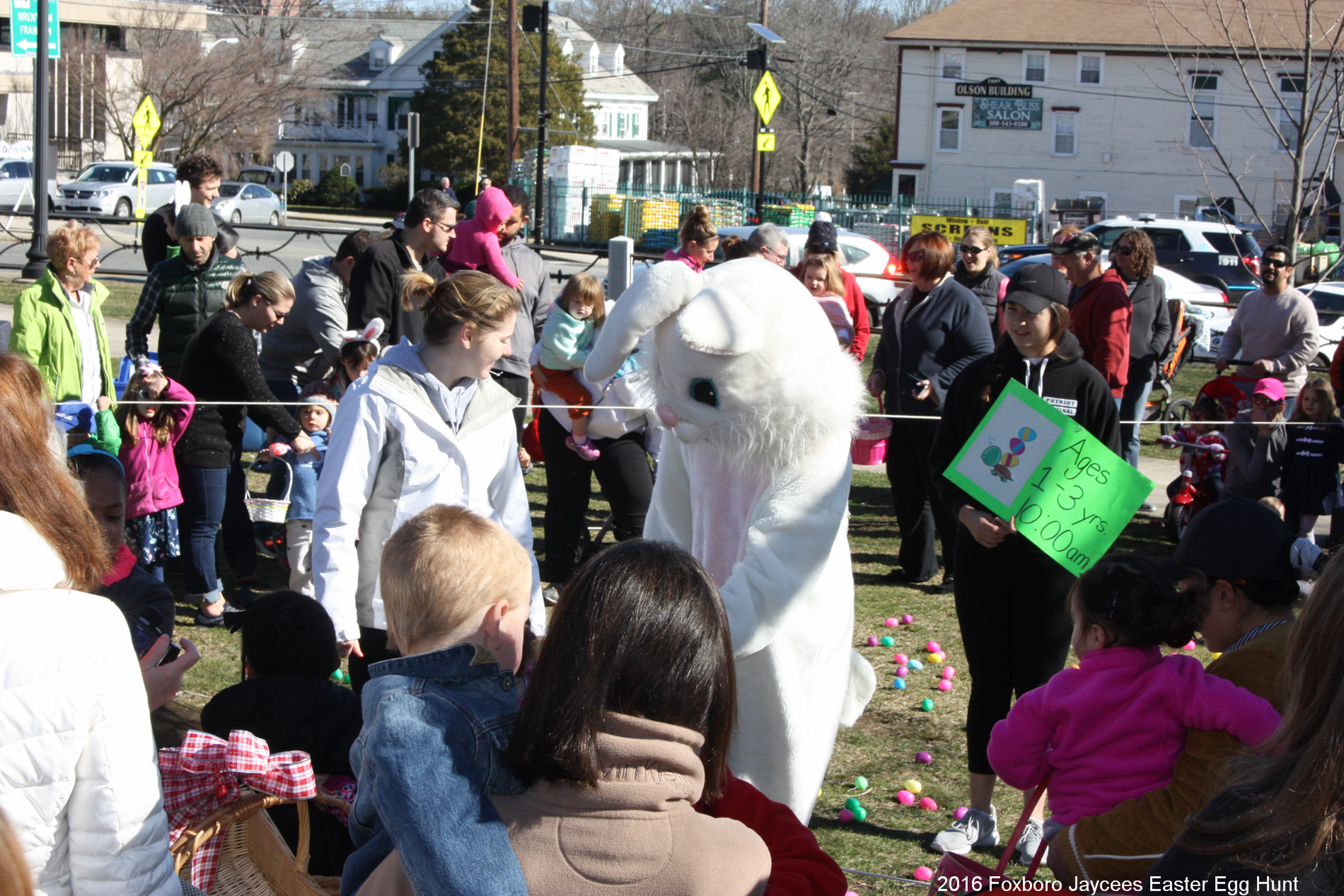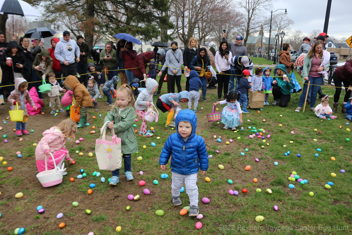 For over 35 years, each spring, right before Easter, the Foxboro Jaycees fill over 3500 (yes, three thousand and five hundred!) plastic eggs with candy and scatter them across Foxboro Common. (It’s not really a “hunt” because the thousands of eggs are everywhere so everyone gets a good bounty of goodies!)